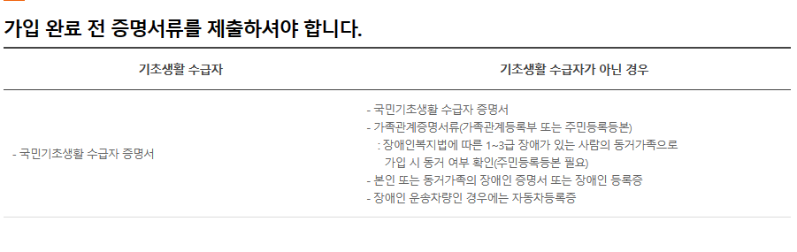 내용을 보면, 본인 또는 동거가족이 장애인복지법 상의 1~3급 장애인의 경우 해당이 되는데요.